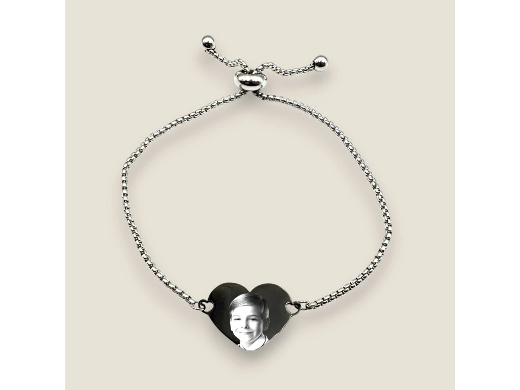 Tento nádherný dámsky náramok so srdiečkom je ideálnym spôsobom, ako zachytiť osobné spomienky a dodať štýlový dotyk každodennému vzhľadu. Vyrobený z kvalitnej chirurgickej ocele, je nielen elegantný, ale aj odolný, takže sa nemusíte obávať poškodenia ani korózie. Na srdiečko (17 x 23 mm) vám vygravírujeme vašu obľúbenú fotografiu alebo text, čím sa stáva tento náramok skutočne osobným a nezabudnuteľným darčekom.