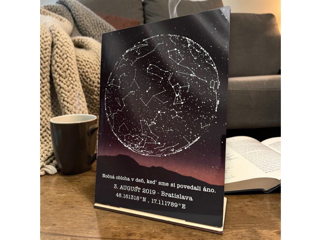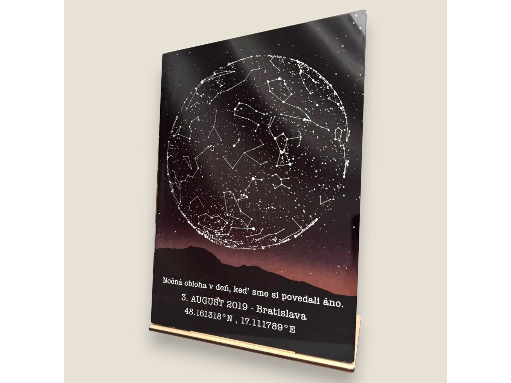 Hviezdna mapa na hliníkovom plechu s dreveným stojanom A4/A5